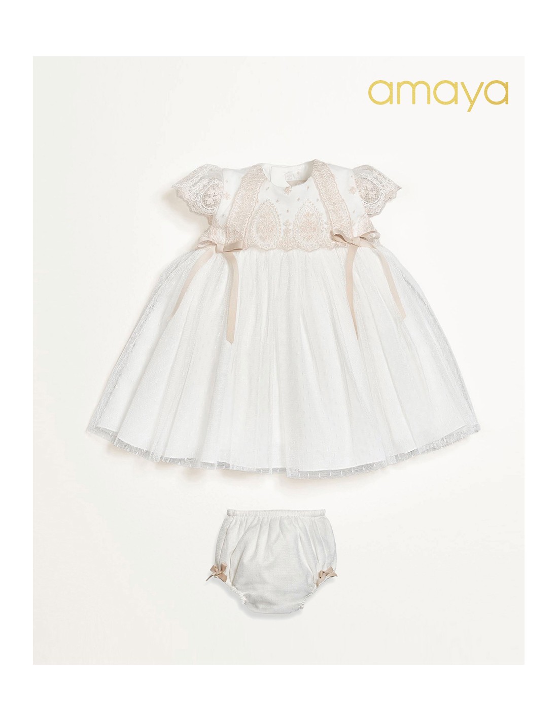 VESTIDO ENCAJE TOSTADO CON CUBREPAÑAL