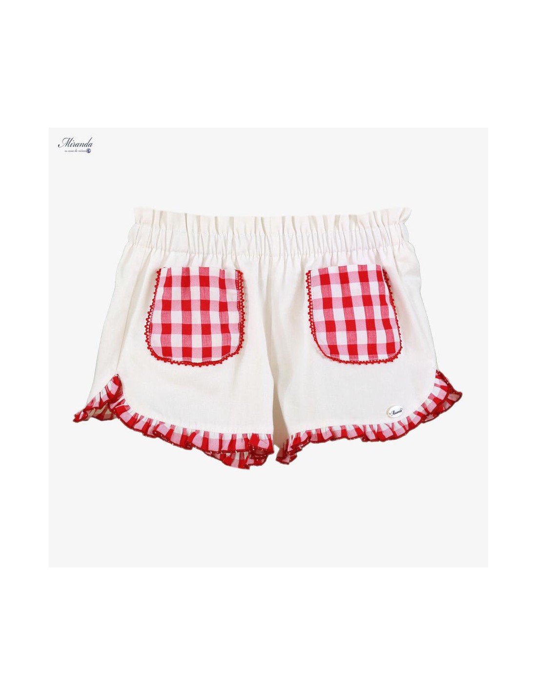 SHORT BLANCO DETALLE VICHY ROJO